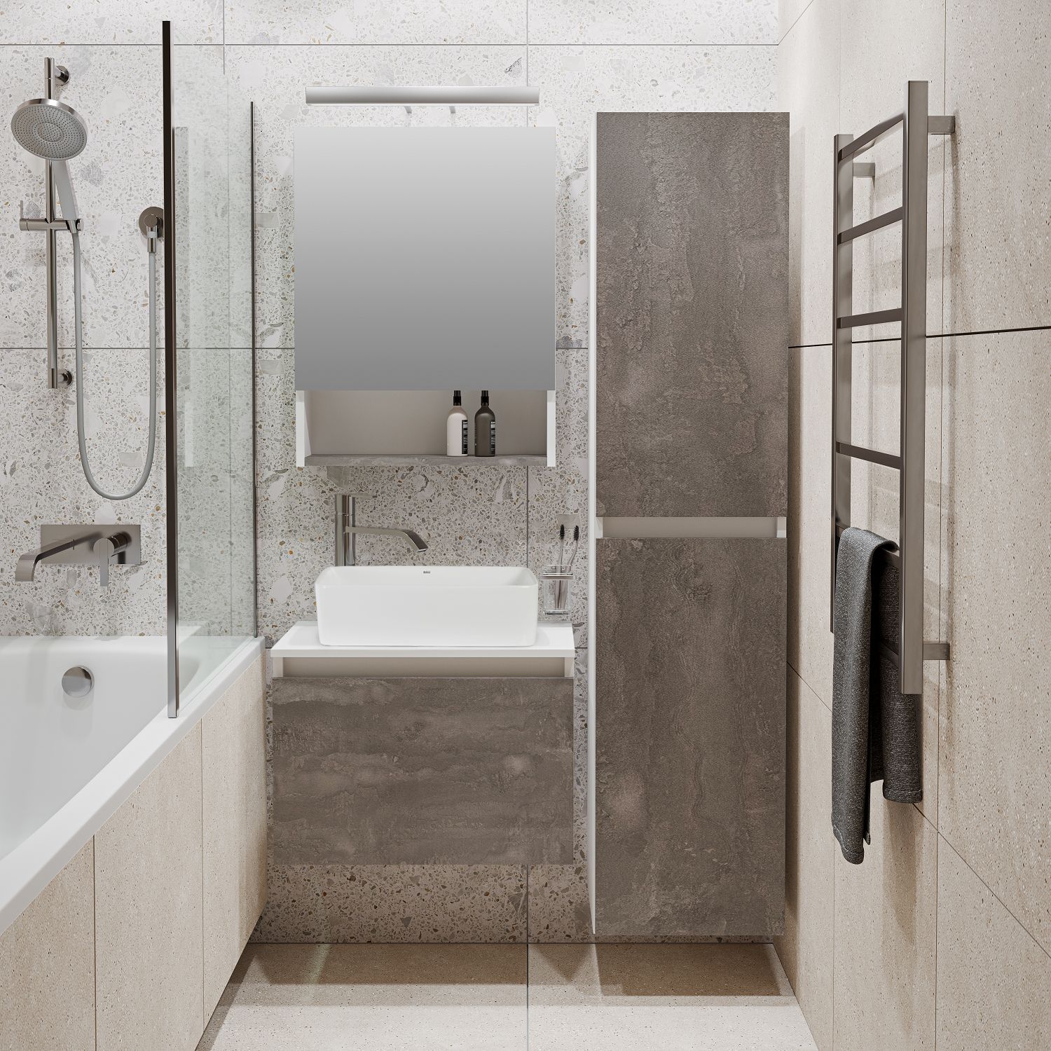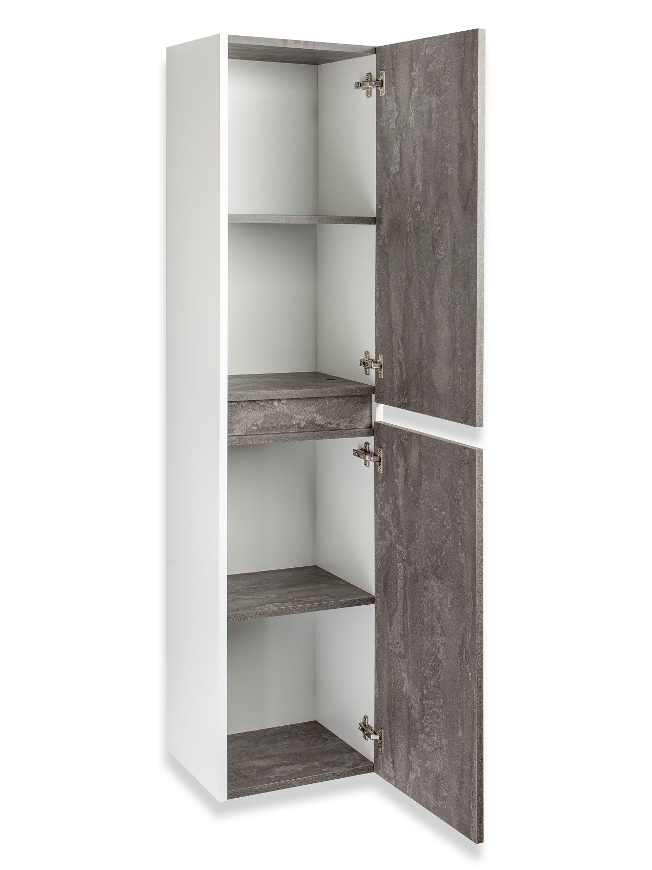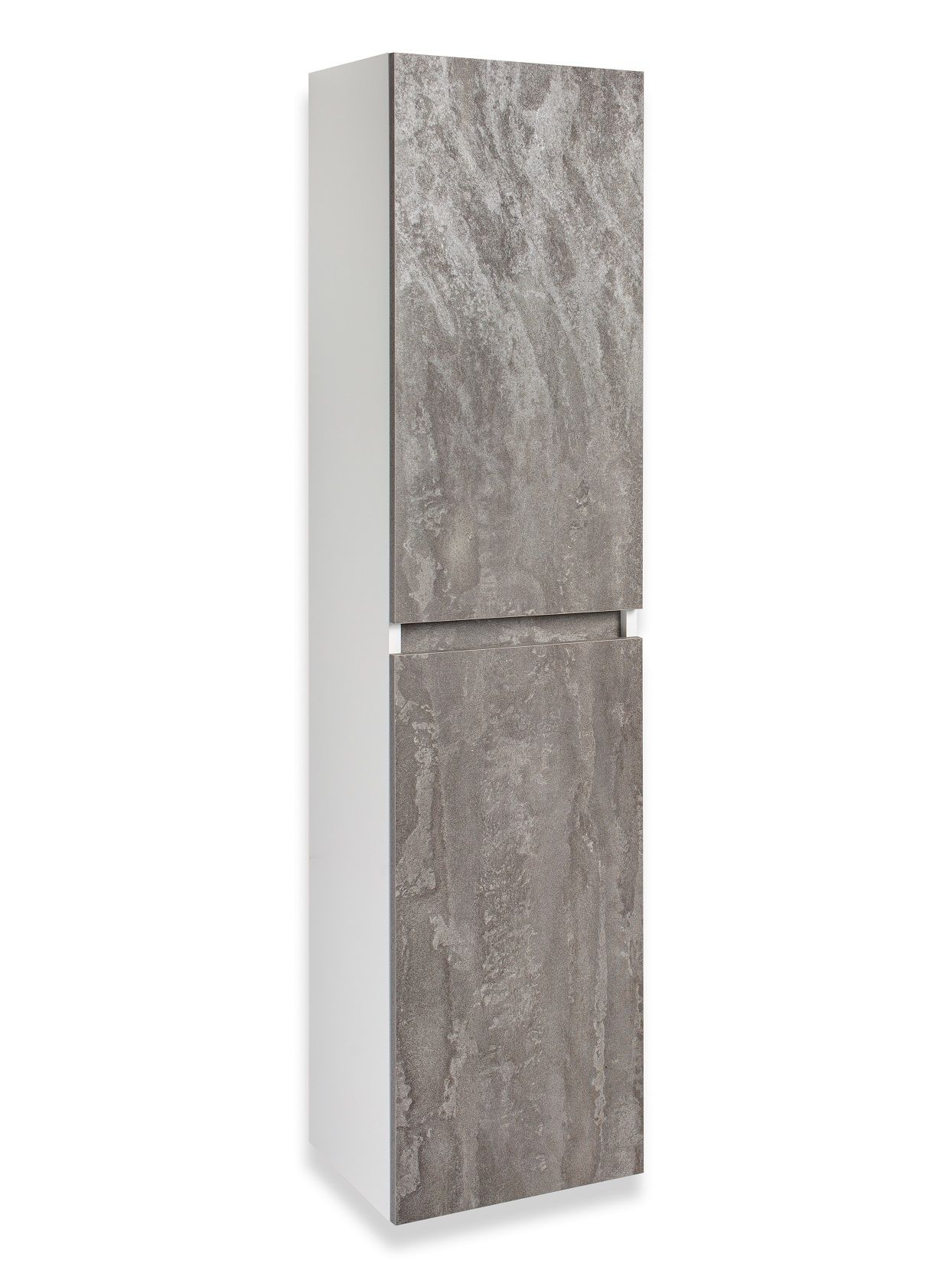 Шкаф пенал для ванной комнаты RUNO Бари (подвесной) - безупречное сочетание модных тенденций с классическим оформлением ванной комнаты. Шкаф в ванную комнату оснащён двумя распашными дверцами, в нижнем и верхнем отделениях по одной встроенной полке. Цвет корпуса классический - белый, при этом цвет фасада в модном цвете – железный камень, идеально впишутся в любой интерьер ванной комнаты. Каждая дверца укомплектована двумя петлями, верхняя с доводчиком, нижняя без доводчика. Мебель для ванной RUNO - красота и практичность в мелочах!