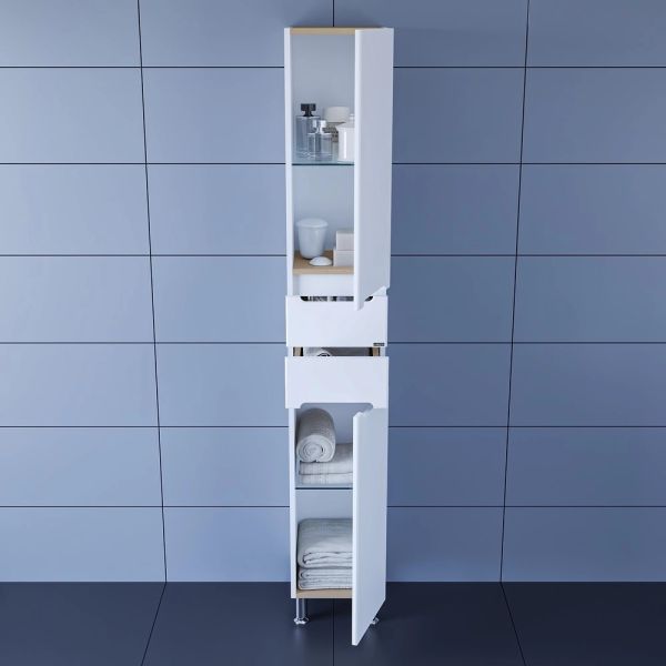 Шкаф-пенал СанТа отличное решение для создания комфортной атмосферы в любой ванной комнате. Напольный способ установки производится непосредственно на пол, при этом конструкция максимально устойчива при серьезных физических нагрузках. В производстве используют только качественные влагостойкие материалы (ВЛДСП), в составе которых полностью отсутствуют опасные вещества. Серия Вегас отличается превосходным дизайном с соблюдением всех существенных элементов современного стиля. Основным цветом, в котором выполнен шкаф-пенал СанТа является белый, безупречно впишется в любой дизайн проект. Шкаф-пенал предусматривает удобную и вместительную систему хранения, состоящую из дверей.Страной бренда СанТа является Россия, все товары производятся с выполнением соответствующих стандартов качества, что позволяет быть полностью уверенными в долговечности и надежности. Шкаф-пенал СанТа поможет сделать уютным любой интерьер и создать идеальную ванную комнату.