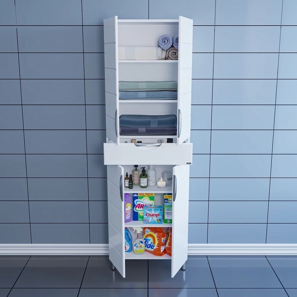 Шкаф-пенал СанТа отличное решение для создания комфортной атмосферы в любой ванной комнате. Напольный способ установки производится непосредственно на пол, при этом конструкция максимально устойчива при серьезных физических нагрузках. В производстве используют только качественные влагостойкие материалы (ВЛДСП), в составе которых полностью отсутствуют опасные вещества. Серия Вегас отличается превосходным дизайном с соблюдением всех существенных элементов современного стиля. Основным цветом, в котором выполнен шкаф-пенал СанТа является белый, безупречно впишется в любой дизайн проект. Шкаф-пенал предусматривает удобную и вместительную систему хранения, состоящую из дверей.Страной бренда СанТа является Россия, все товары производятся с выполнением соответствующих стандартов качества, что позволяет быть полностью уверенными в долговечности и надежности. Шкаф-пенал СанТа поможет сделать уютным любой интерьер и создать идеальную ванную комнату.