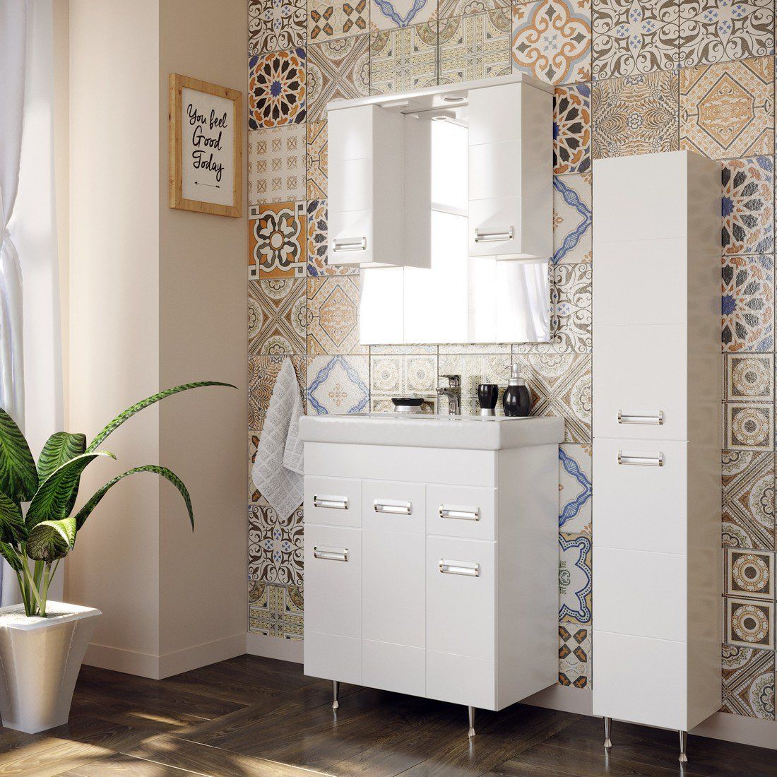 Шкаф-пенал Stella Polar не только функциональный предмет интерьера ванной комнаты, но великолепное эргономичное дополнение дизайна, как небольшого, так и крупного помещения. Напольный способ установки производится непосредственно на пол, при этом конструкция максимально устойчива при серьезных физических нагрузках.Компания Stella Polar использует при производстве высококачественные водоотталкивающие материалы, соответствующие всем необходимым требованиям безопасности. Коллекция выполнена в эксклюзивном дизайнерском решении в лучших традициях. Белый, основной цвет исполнения Stella Polar, отлично подходящий большинству дизайнерских решений. Шкаф-пенал предусматривает удобную и вместительную систему хранения. Качественные доводчики позволяют обеспечить мягкое и тихое закрывание. Россия родина бренда Stella Polar, вся продукция производится со строгим соблюдением всех стандартов, благодаря чему можно быть абсолютно уверенным в надежности и высоком качестве. Шкаф-пенал Stella Polar создаст уют и комфорт в любом дизайнерском решении, и ванная комната обретет неповторимый элемент интерьера.