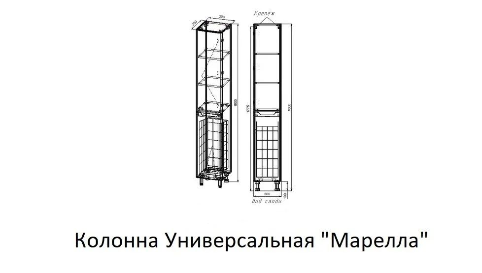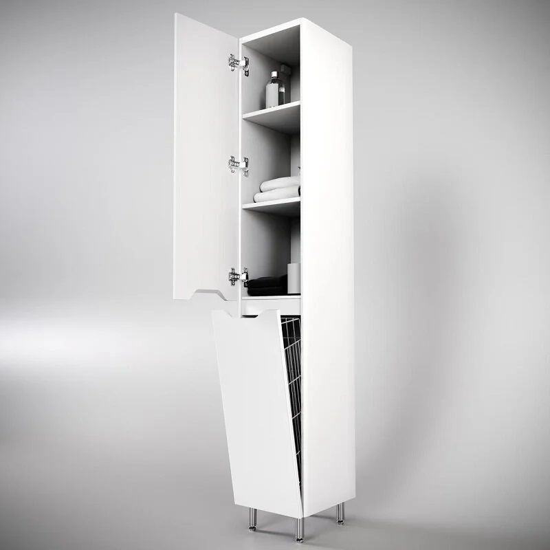 • 1 распашной фасад, 2 полки, бельевая корзина