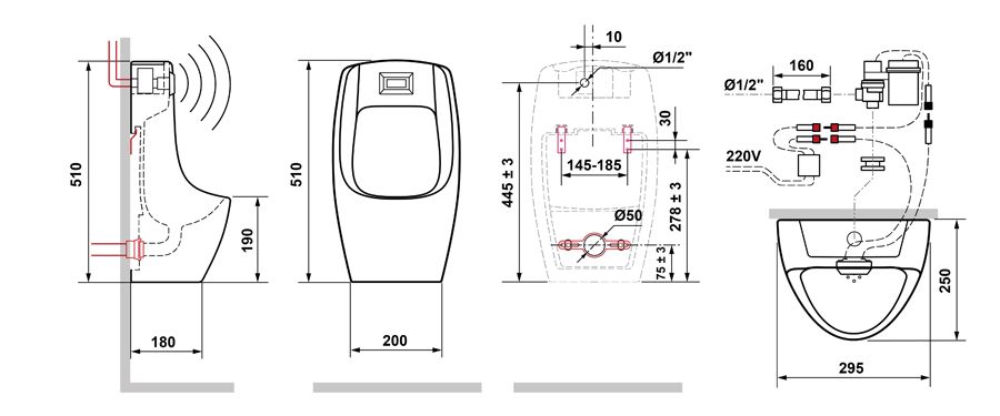 Писсуар подвесной Laguraty Sensor 560 X выпуск горизонтальный белый купить