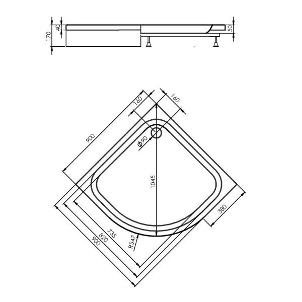 Поддон Alex Baitler AB9017D-1 1/4 круга в сборе (900x900x170)
