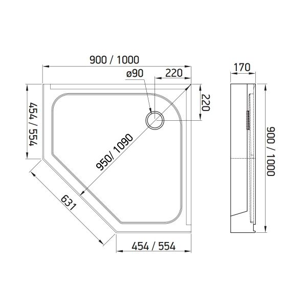 Поддон для душа Alex Baitler 90х90 AB9017V-1 Белый