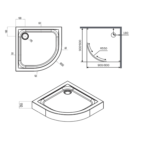 • Форма: 1/4 круга