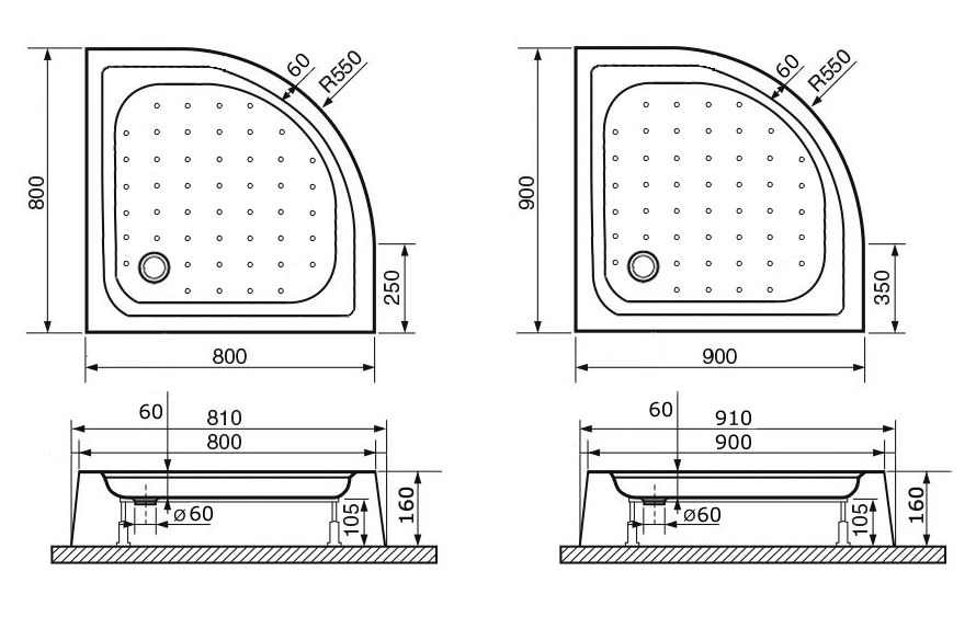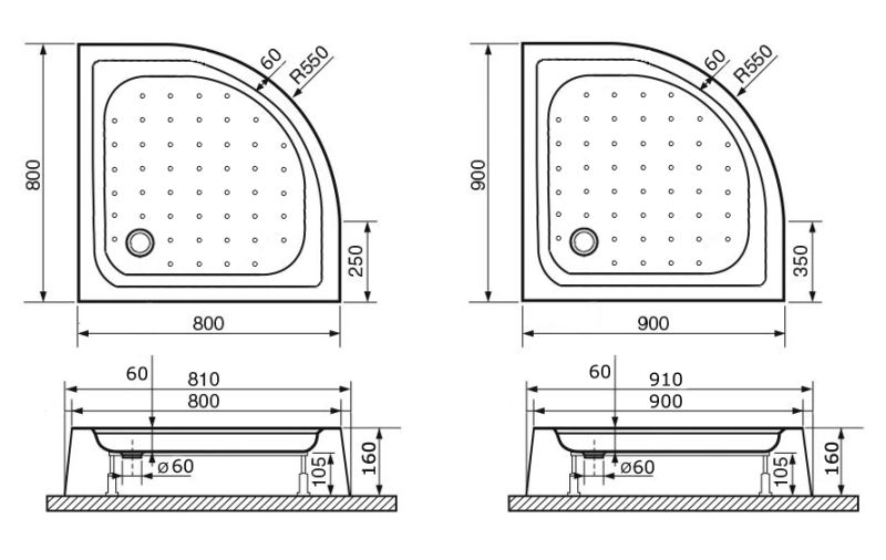 Акриловый поддон для душа полукруглый R-550