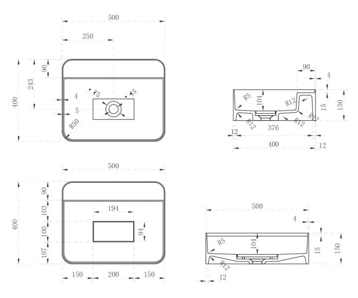 • Отверстия под смеситель: