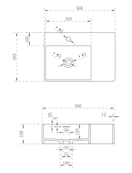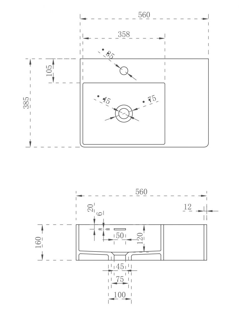 • Отверстия под смеситель:
