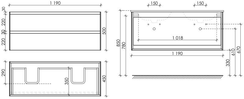 • Размер: Ш119 x Г45 x В50 см