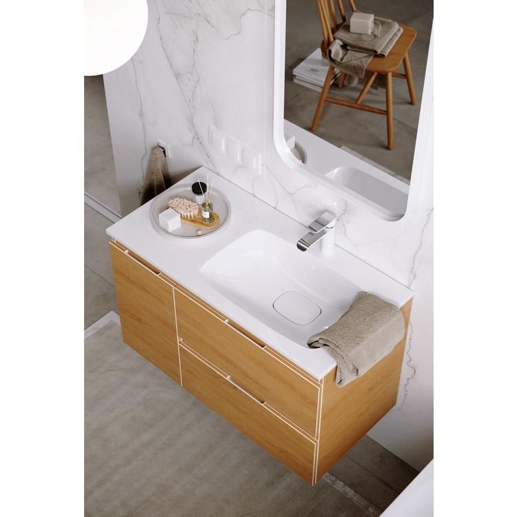 Подвесная тумба под раковину Aqwella Accent ACC0109RDZ 90 смПодвесная тумба с двумя ящиками и одной дверью в цвете дуб золотой с умывальником из литьевого мрамора (чаша справа)