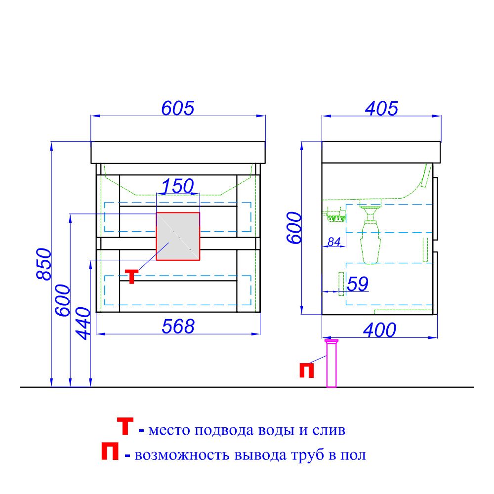 • Тумбы поставляются в подвесном исполнении с двумя ящиками.