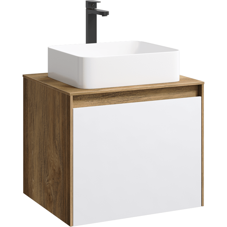 Подвесная тумба под раковину Aqwella Mobi MOB0106DB+MOB0706W 60 смПодвесная тумба 60 см с двумя ящиками: основной и внутренний, скрытый за фасадом. Цвет дуб балтийский/белый; с умывальником
