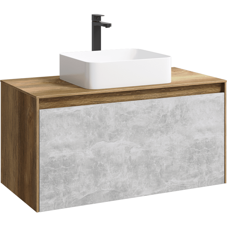 Подвесная тумба под раковину Aqwella Mobi MOB0110DB+MOB0710BS 100 смПодвесная тумба 100 см с двумя ящиками: основной и внутренний, скрытый за фасадом. Цвет дуб балтийский/бетон светлый; с умывальником