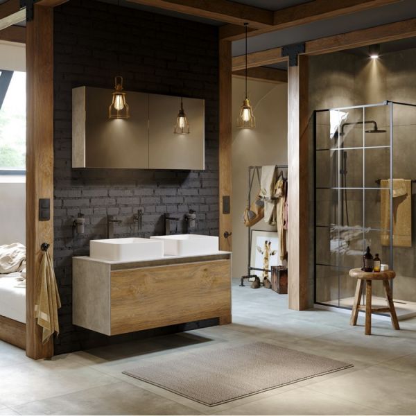 Подвесная тумба под раковину Aqwella Mobi MOB0112DB+MOB0712BS 120 смПодвесная тумба 120 см с двумя ящиками: основной и внутренний, скрытый за фасадом. Цвет дуб балтийский/бетон светлый; с умывальником