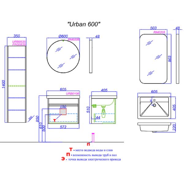 Подвесная тумба под раковину Aqwella Urban URB0106DD 60 см