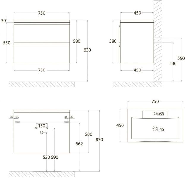 • Рекомендуемая высота от пола: 830 мм