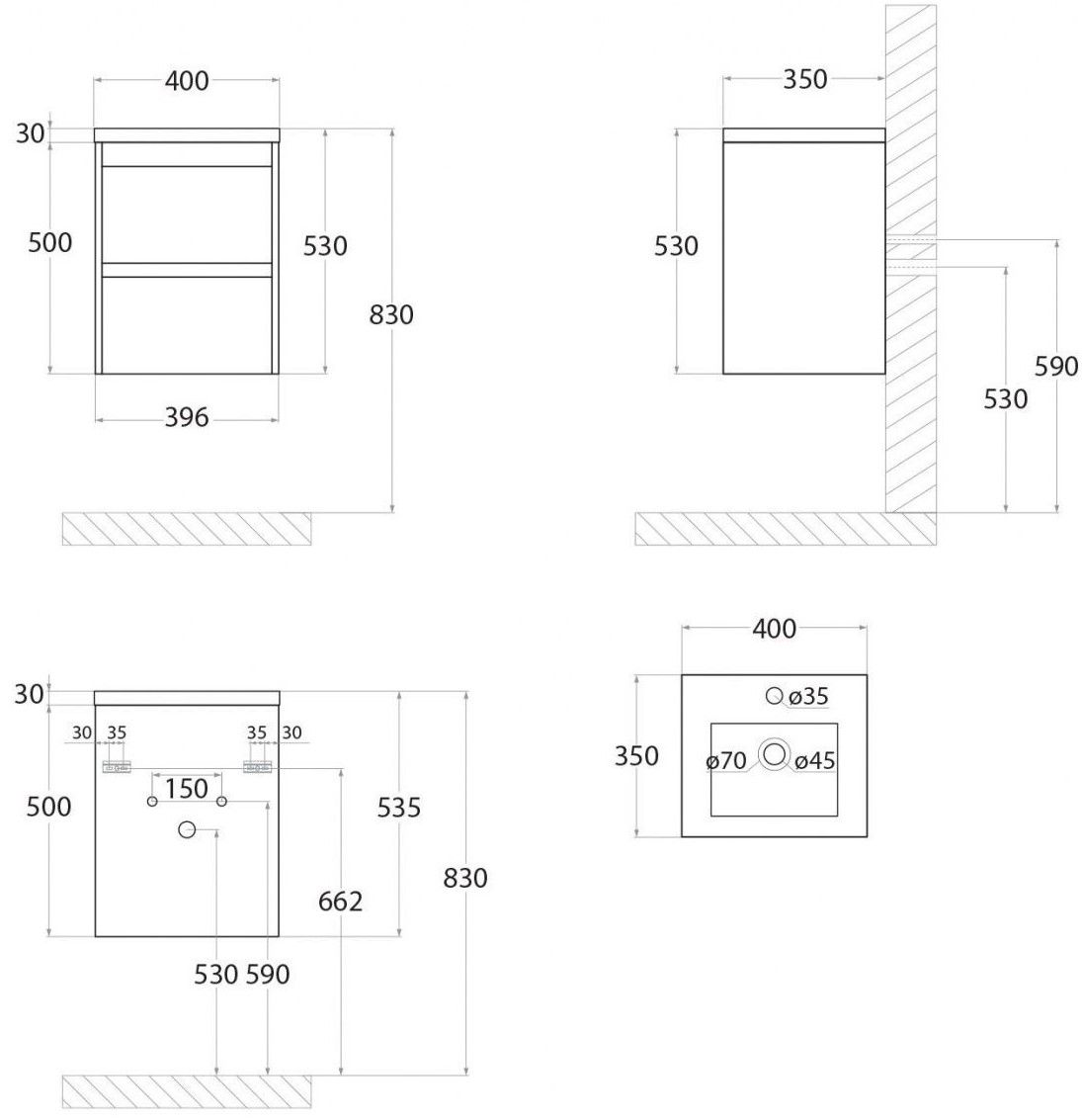 Тумба под раковину Art&Max выполнена в современном стиле и прекрасно впишется в интерьер любой ванной комнаты. Благодаря подвесной конструкции изделие не занимает много места, позволяет экономить пространство и облегчает уборку. Модель оснащена двумя выдвижными ящиками с доводчиками. Фасад изделия выполнен из ЛДСП.Тумба может использоваться вместе с раковиной AM-LAV-400-MR-A.Раковина и смеситель в комплект поставки не входят и приобретаются отдельно.Особенности: