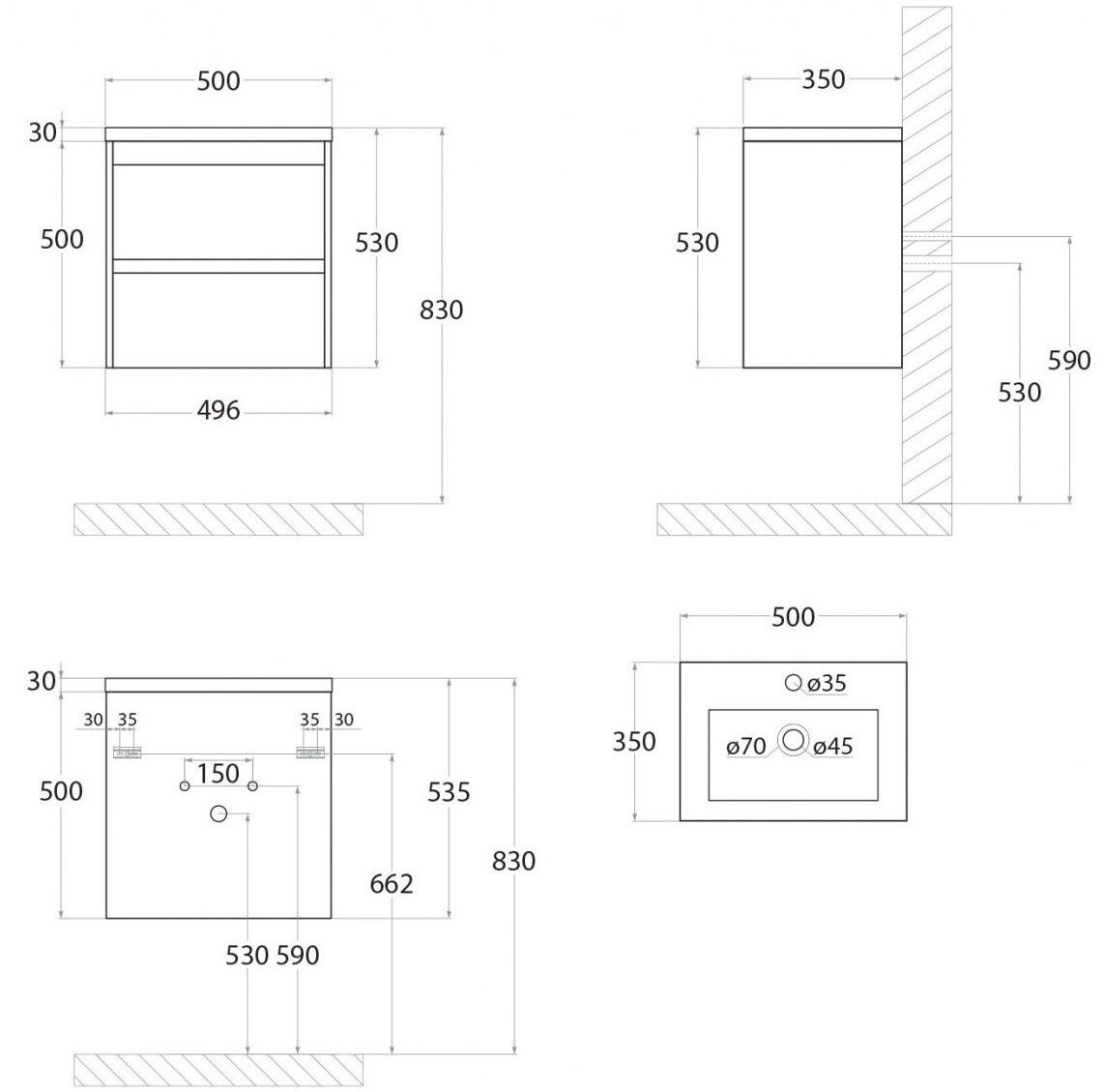 Тумба под раковину Art&Max выполнена в современном стиле и прекрасно впишется в интерьер любой ванной комнаты. Благодаря подвесной конструкции изделие не занимает много места, позволяет экономить пространство и облегчает уборку. Модель оснащена двумя выдвижными ящиками с доводчиками. Фасад изделия выполнен из ЛДСП.Тумба может использоваться вместе с раковиной AM-LAV-500-MR-A.Раковина и смеситель в комплект поставки не входят и приобретаются отдельно.Особенности: