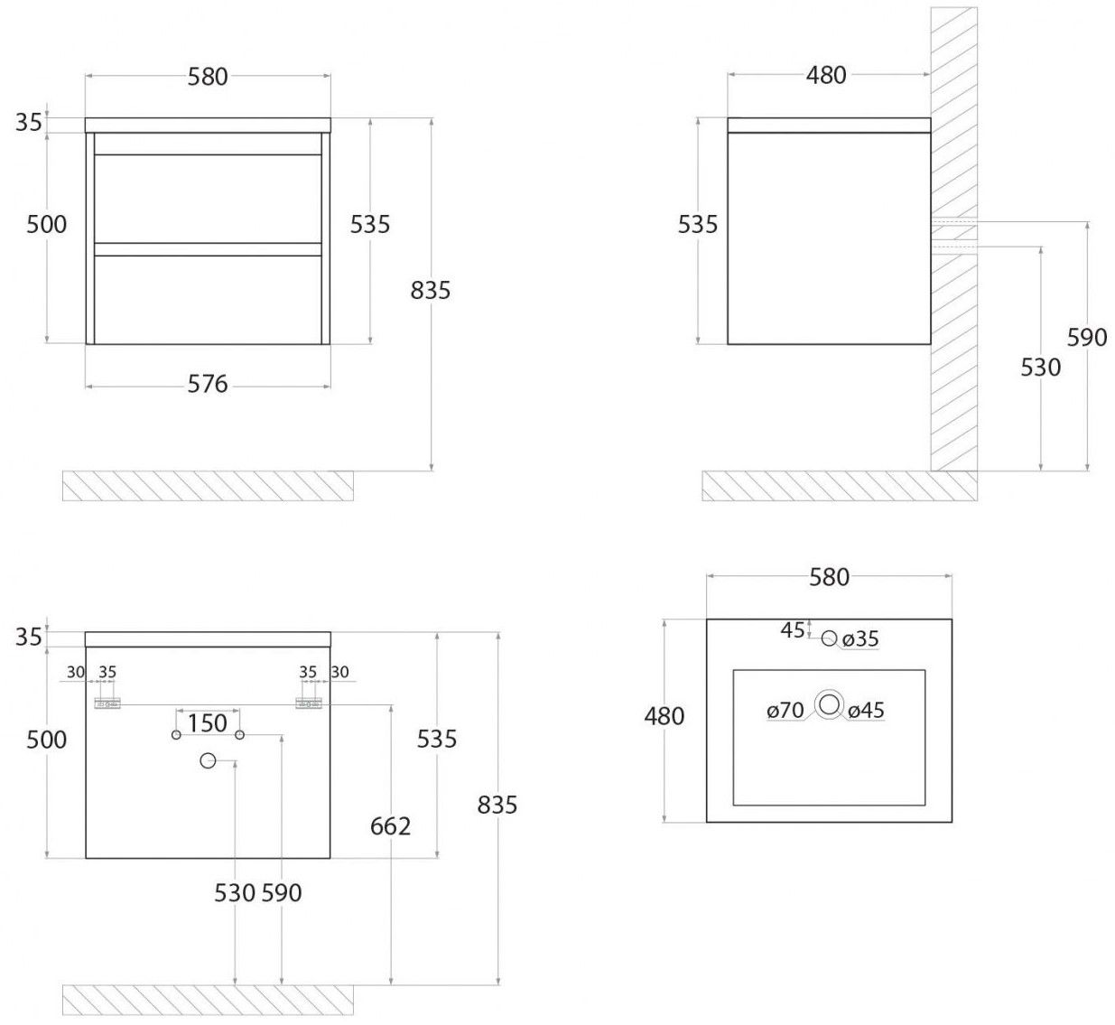 Тумба под раковину Art&Max выполнена в современном стиле и прекрасно впишется в интерьер любой ванной комнаты. Благодаря подвесной конструкции изделие не занимает много места, позволяет экономить пространство и облегчает уборку. Модель оснащена двумя выдвижными ящиками с доводчиками. Фасад изделия выполнен из ЛДСП.Тумба может использоваться вместе с раковиной AM-LAV-580-MR-A.Раковина и смеситель в комплект поставки не входят и приобретаются отдельно.Особенности: