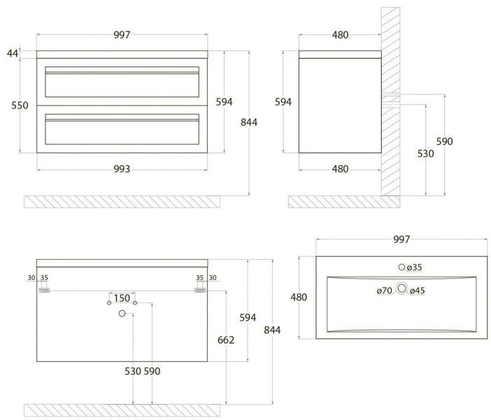 - Рекомендуемая высота от пола: 844 мм