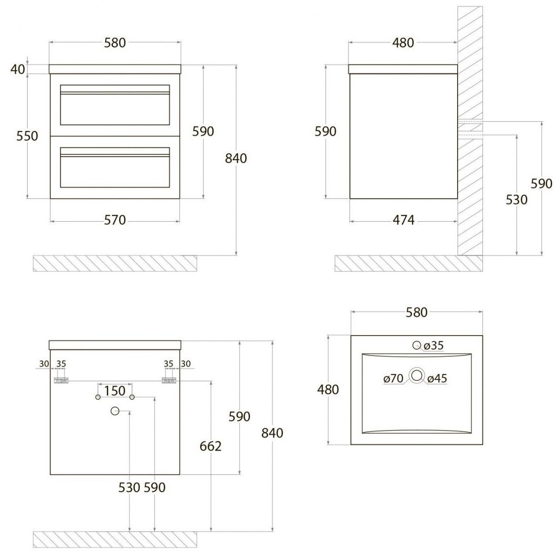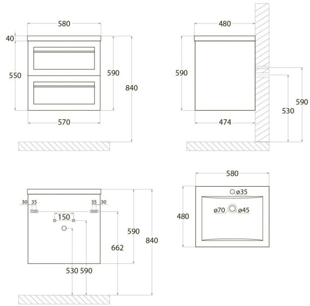 • Рекомендуемая высота от пола: 840 мм