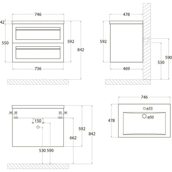 Тумба под раковину Art&Max выполнена в современном стиле и прекрасно впишется в интерьер любой ванной комнаты. Благодаря подвесной конструкции изделие не занимает много места, позволяет экономить пространство и облегчает уборку. Модель оснащена двумя выдвижными ящиками с доводчиками. Фасад изделия выполнен из МДФ.Тумба может использоваться вместе с раковиной AM-LAV-750-MR-A.Раковина и смеситель в комплект поставки не входят и приобретаются отдельно.Особенности: