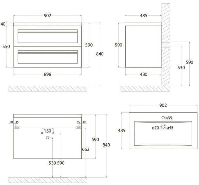 - Рекомендуемая высота от пола: 840 мм