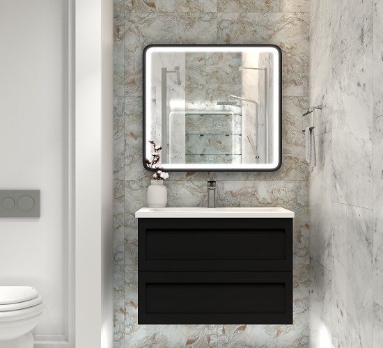 Подвесная тумба под раковину Art&Max Platino 90см чёрный матовый AM-Platino-900-2C-SO-NM