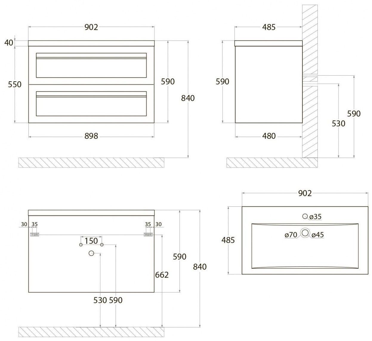 Тумба под раковину Art&Max выполнена в современном стиле и прекрасно впишется в интерьер любой ванной комнаты. Благодаря подвесной конструкции изделие не занимает много места, позволяет экономить пространство и облегчает уборку. Модель оснащена двумя выдвижными ящиками с доводчиками. Фасад изделия выполнен из МДФ.Тумба может использоваться вместе с раковиной AM-LAV-900-MR-A.Раковина и смеситель в комплект поставки не входят и приобретаются отдельно.Особенности: