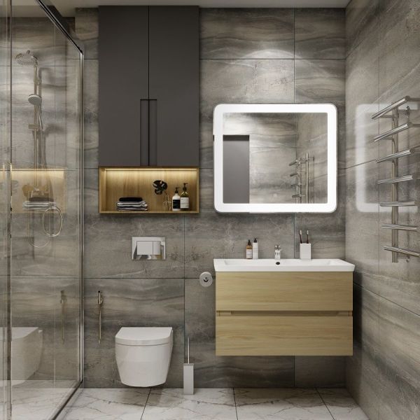 Подвесная тумба под раковину Art&Max Techno 90см дуб мадейра янтарь AM-Techno-900-2C-SO-LW674