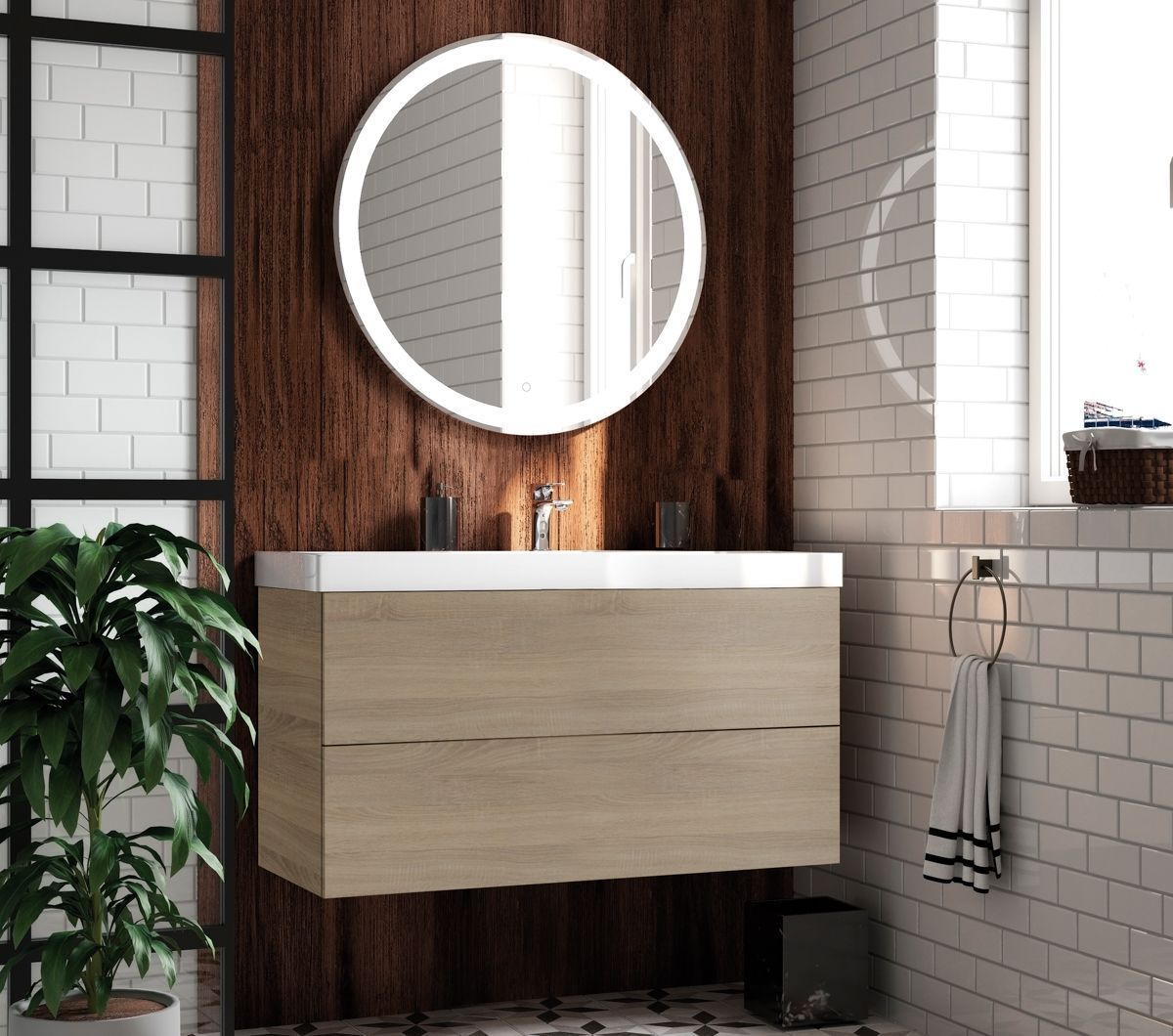 Подвесная тумба под раковину Art&Max Verona Push 100см дуб сонома AM-Verona-Push-1000-2C-SO-RS-TS
