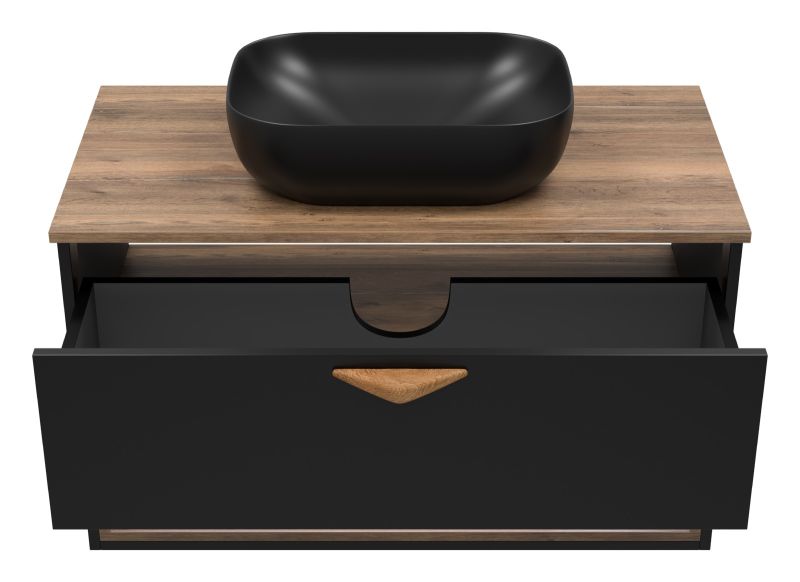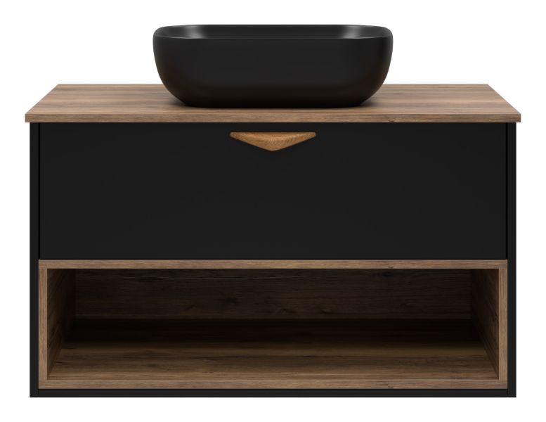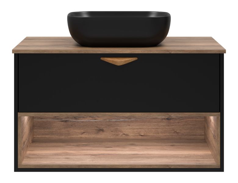 Подвесная тумба под раковину Brevita Bergen BER-07090-19-02-1Я с подсветкой 90см дуб Галифакс олово/чёрный