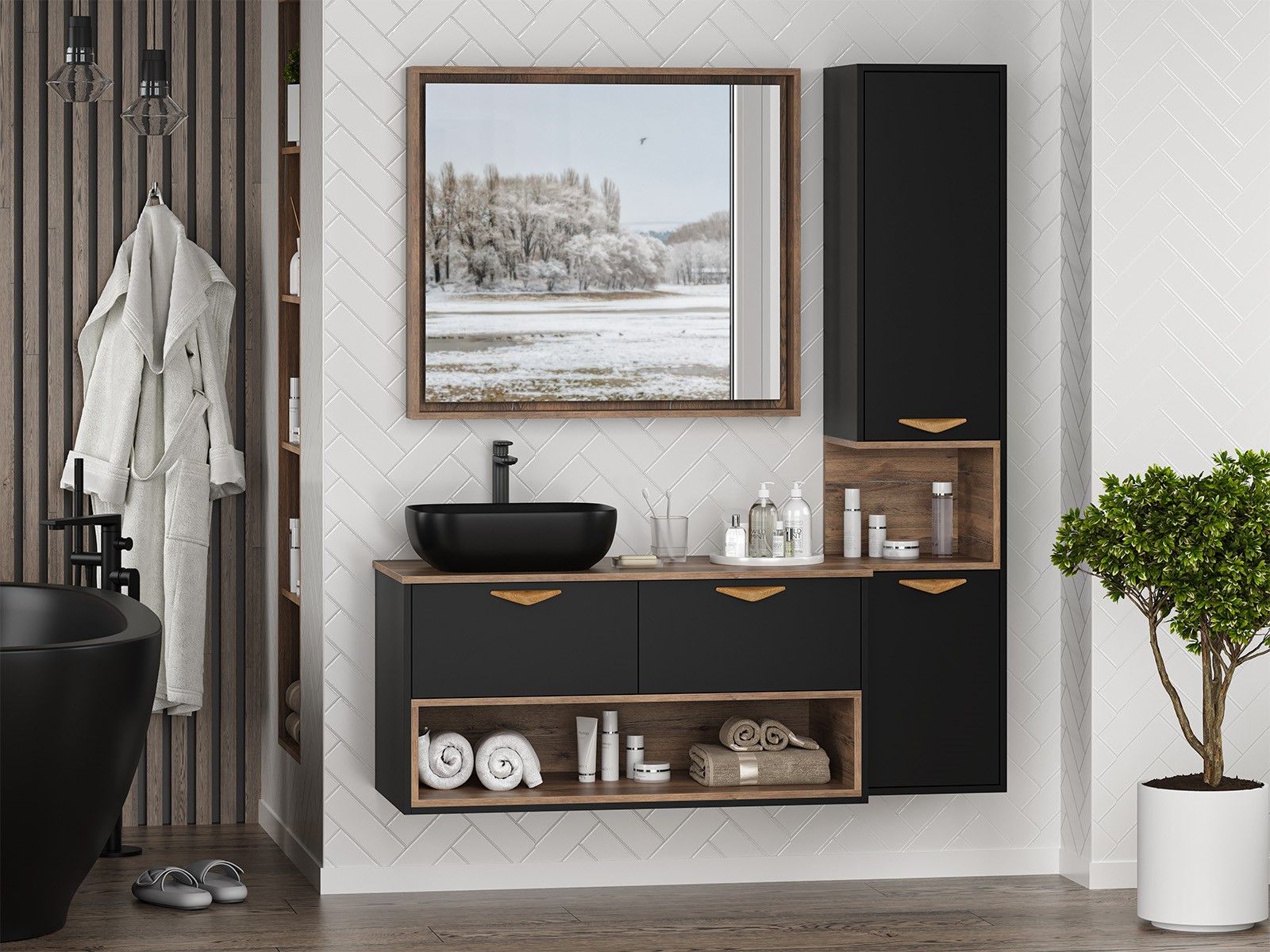 Подвесная тумба под раковину Brevita Bergen с подсветкой BER-07105-19-02-2Я 105см дуб Галифакс олово/чёрный купить
