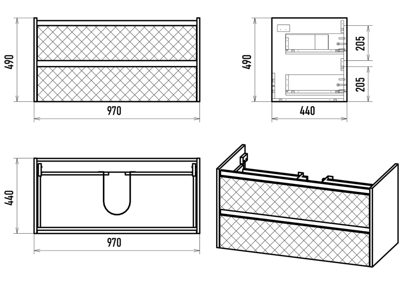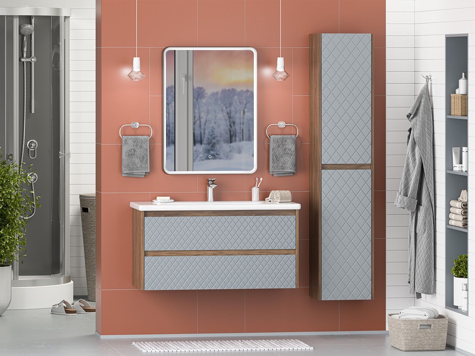Подвесная тумба под раковину Brevita Chester CHE-09100-49502Я 100см серый/дуб Чарльстон темно-коричневый