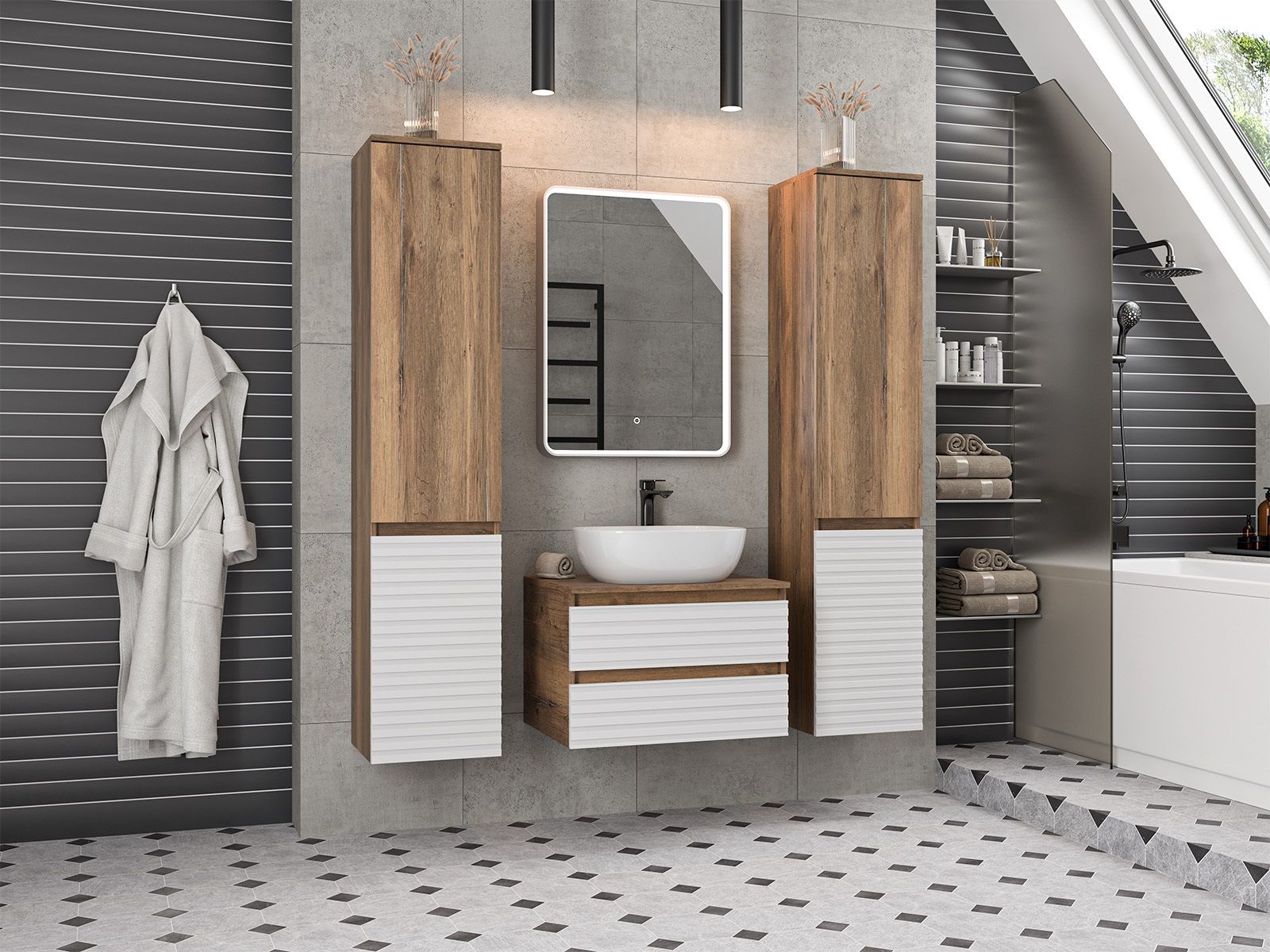 Подвесная тумба в ванную комнату – это не просто элемент мебели, а подлинный акцент в интерьере, который сочетает в себе функциональность и стиль. Она придаёт помещению лёгкость и воздушность, освобождая пространство на полу и создавая иллюзию большего объёма.Функциональные особенности таких тумб варьируются от наличия выдвижных ящиков до встроенных систем хранения, которые помогают организовать пространство ванной комнаты. Важным аспектом является также возможность выбора различных цветовых решений и отделок, что позволяет гармонично вписать тумбу в любой интерьер – от классического до ультрасовременного.С помощью подвесной тумбы ванная комната становится не только более удобной, но и эстетически привлекательной, создавая атмосферу уюта и роскоши.