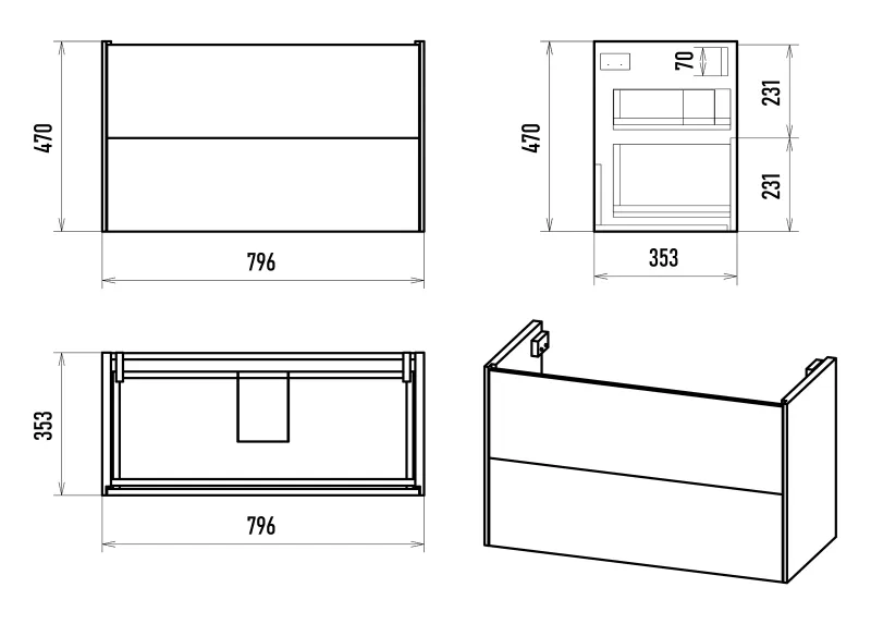 Подвесная тумба под раковину Brevita Toy 80 УТ000025661 белый