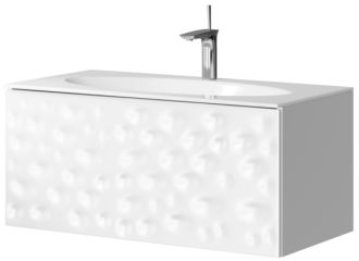 Подвесная тумба под раковину Clarberg Dune 100 DUN0110 белого цвета, с двойным выдвижным ящиком, для использования в ванных комнатах с повышенной влажностью. Эргономичность и гармония. Природные мотивы дизайна: узор песчаных дюн балтийского побережья.Технические данные:Цвет: белый.