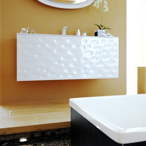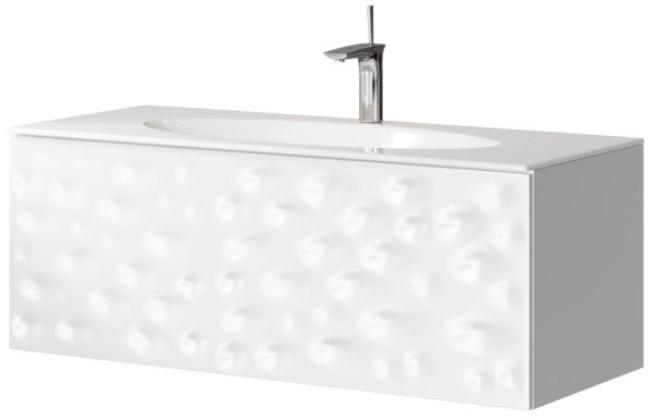 Подвесная тумба под раковину Clarberg Dune 120 DUN0112 белого цвета, с двойным выдвижным ящиком, для использования в ванных комнатах с повышенной влажностью. Эргономичность и гармония. Природные мотивы дизайна: узор песчаных дюн балтийского побережья.Технические данные:Цвет: белый.