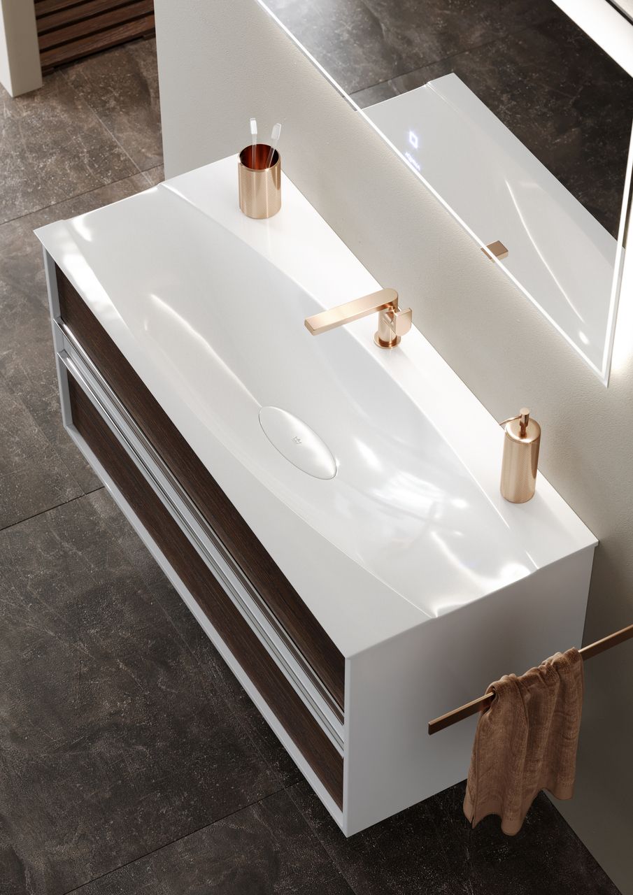 Центральный ящик с системой открытия push-to-open, внутри оснащен системой организации пространства из натурального дерева.