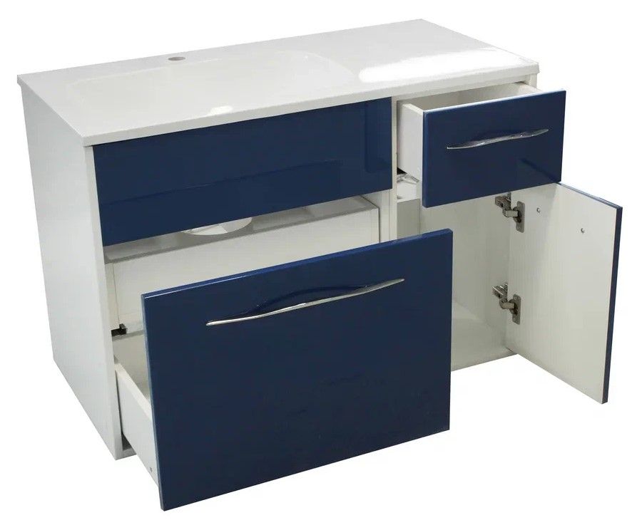 Коллекция Barcelona выполнена в стиле модерн. Плавные линии и формы подчеркивают элегантность комплекта, а разнообразие комплектации позволяет использовать мебель в качестве маркера вашего собственного стиля. За счет раковины с крылом коллекция Barcelona более вместительная и удобная. В подвесной тумбе 2 ящика: большой со скрытым хранением (дополнительный выдвижной ящик) и маленький предполагает хранение различных аксессуаров, а также секция с распашной дверцей где можно разместить бытовую химию.Тумба белого цвета по умолчанию. Возможна покраска по палитре RAL.