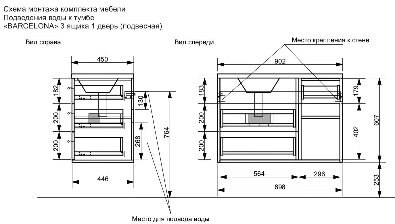 Подвесная тумба под раковину Эстет Barcelona ФР-00003576 Л 90см два ящика одна дверь купить