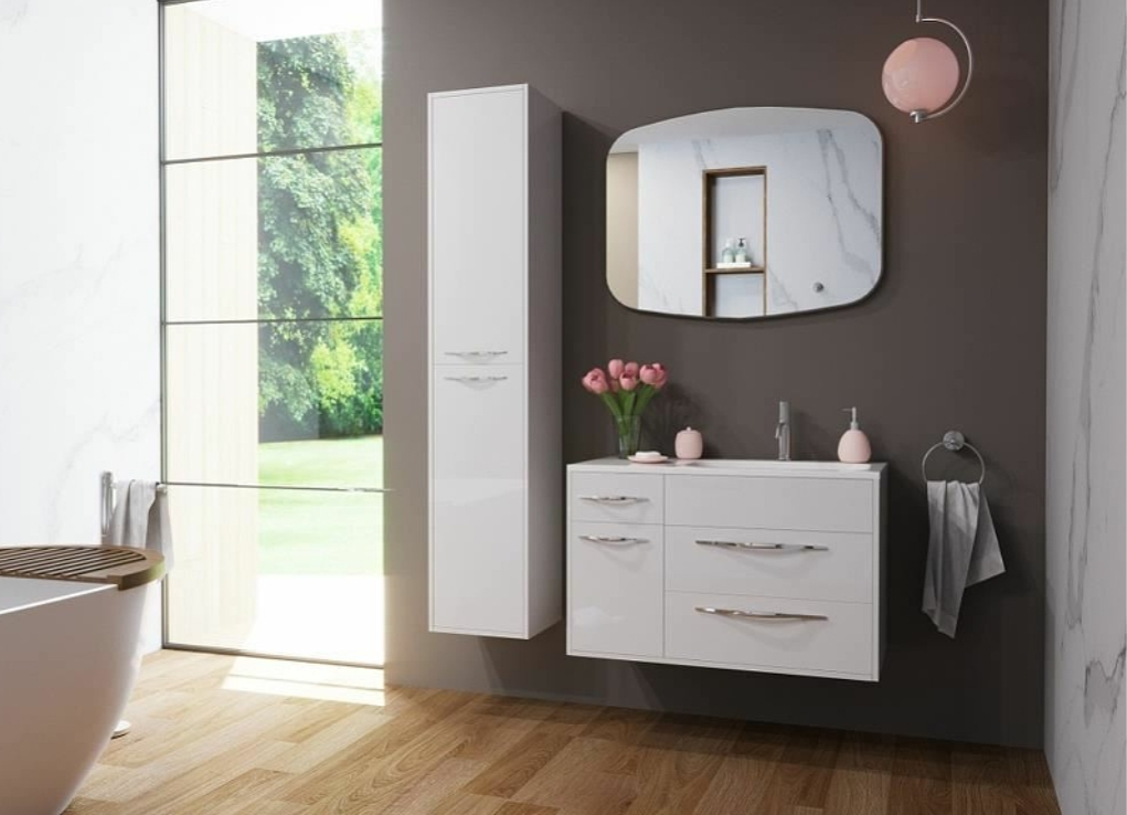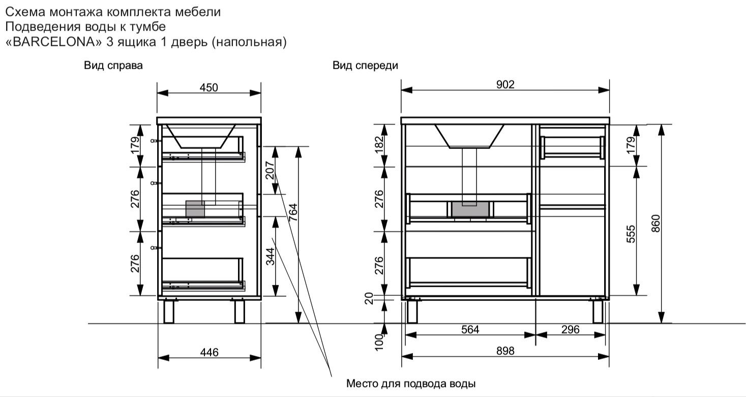 Коллекция Barcelona выполнена в стиле модерн. Плавные линии и формы подчеркивают элегантность комплекта, а разнообразие комплектации позволяет использовать мебель в качестве маркера вашего собственного стиля. За счет раковины с крылом коллекция Barcelona более вместительная и удобная. В подвесной тумбе располагаются 3 ящика и дополнительное пространство с распашной дверцей. Два ящика предполагают размещение более крупных вещей, а один ящик для мелких предметов. В секции с распашной дверцей можно разместить бытовую химиюТумба белого цвета по умолчанию. Возможна покраска по палитре RAL.