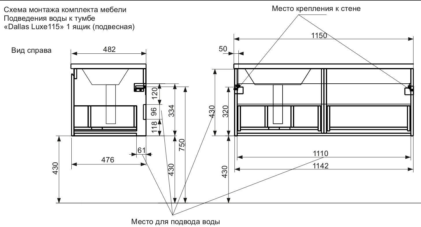 Подвесная тумба под раковину Эстет Dallas Luxe ФР-00002305 Л/П 115см один ящик белый