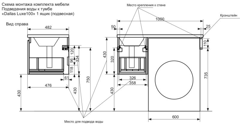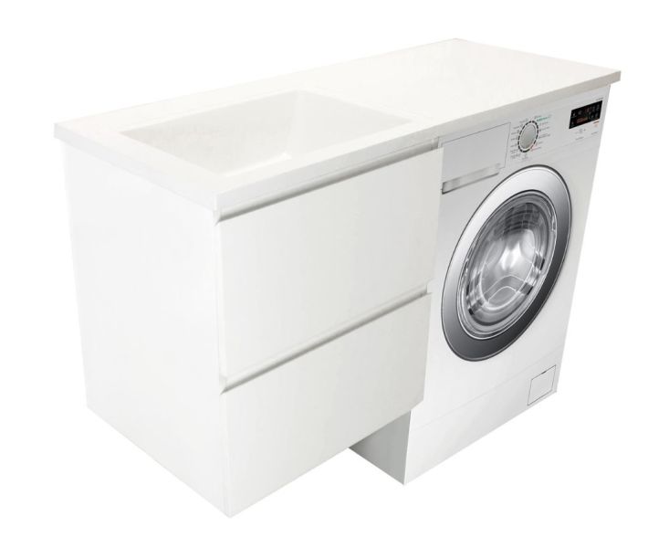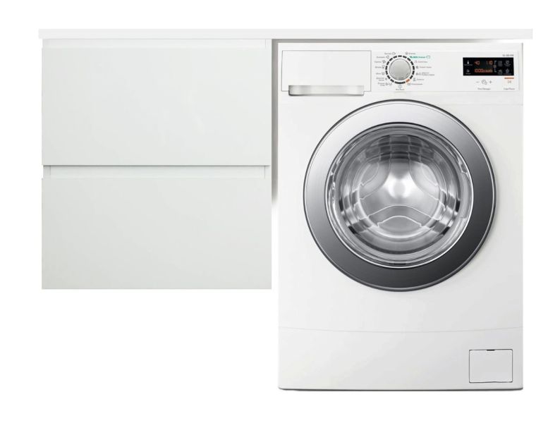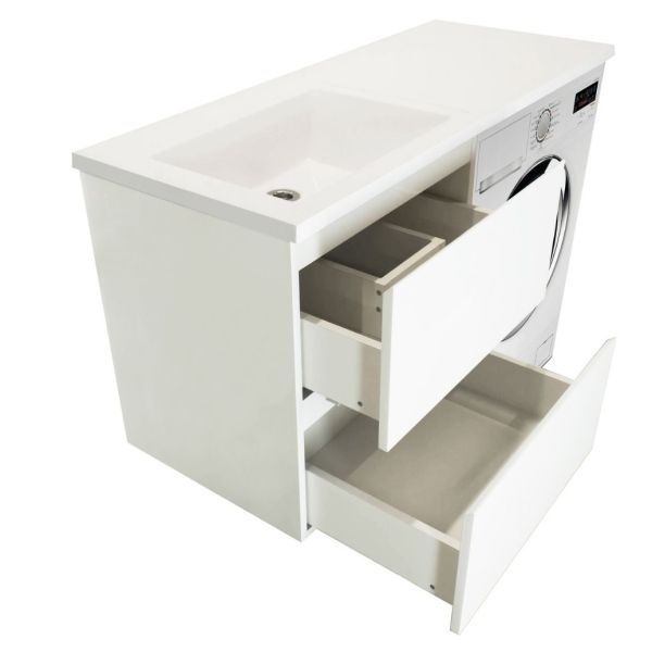 Коллекция мебели для ванной комнаты Dallas Luxe покоряет своей удивительной простой и функциональностью. Стиральная машина устанавливается под столешницей, за счет чего экономит место в ванной комнате. В тумбе имеются два ящика. Нижний ящик тумбы – широкий и вместительный – предназначен для крупных предметов, а в верхнем имеется специальная организация пространства, позволяющая хранить мелкие вещи. Подвесная система монтажа позволяет более эффективно использовать пространство, не мешает уборке в ванной комнате.