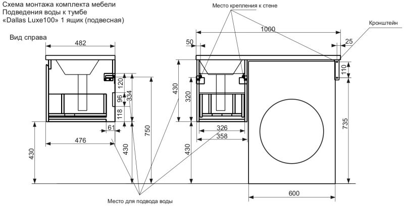 Подвесная тумба под раковину Эстет Dallas Luxe ФР-00002310 Л/П 100см длинный ящик белый купить