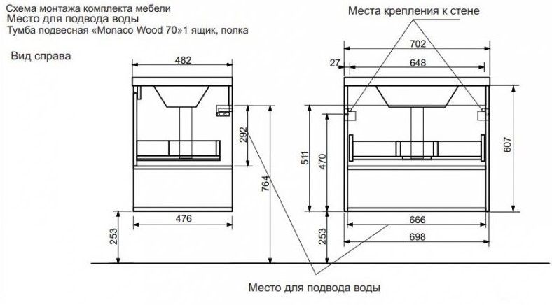 Подвесная тумба под раковину Эстет Monaco Wood ФР-00010678 70см один ящик белый/дуб рустикальный купить