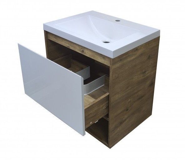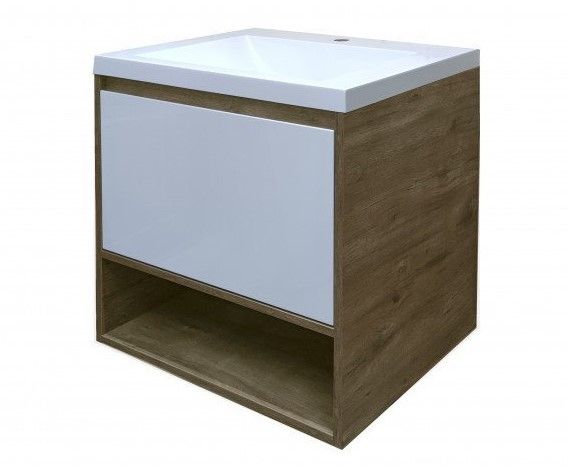 Подвесная тумба под раковину Эстет Monaco Wood ФР-00010678 70см один ящик белый/дуб рустикальный