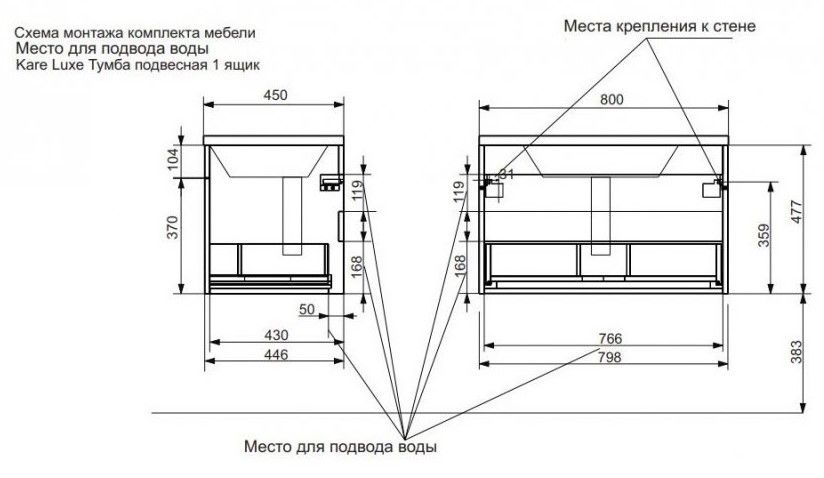 Подвесная тумба под раковину Kare Luxe ФР-00005720 80см один ящик белый