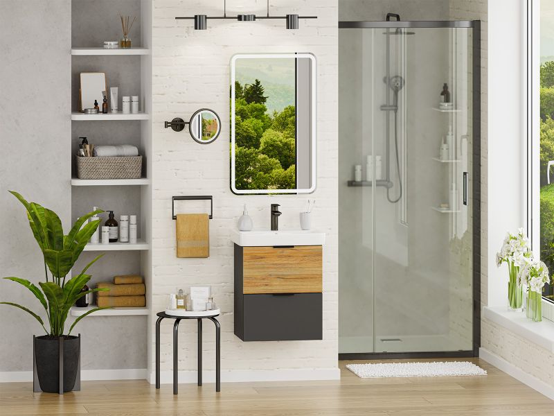Подвесная тумба под раковину Misty Форест 50см дуб Вотан/антрацит