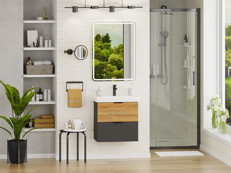 Подвесная тумба под раковину Misty Форест 60см дуб Вотан/антрацит